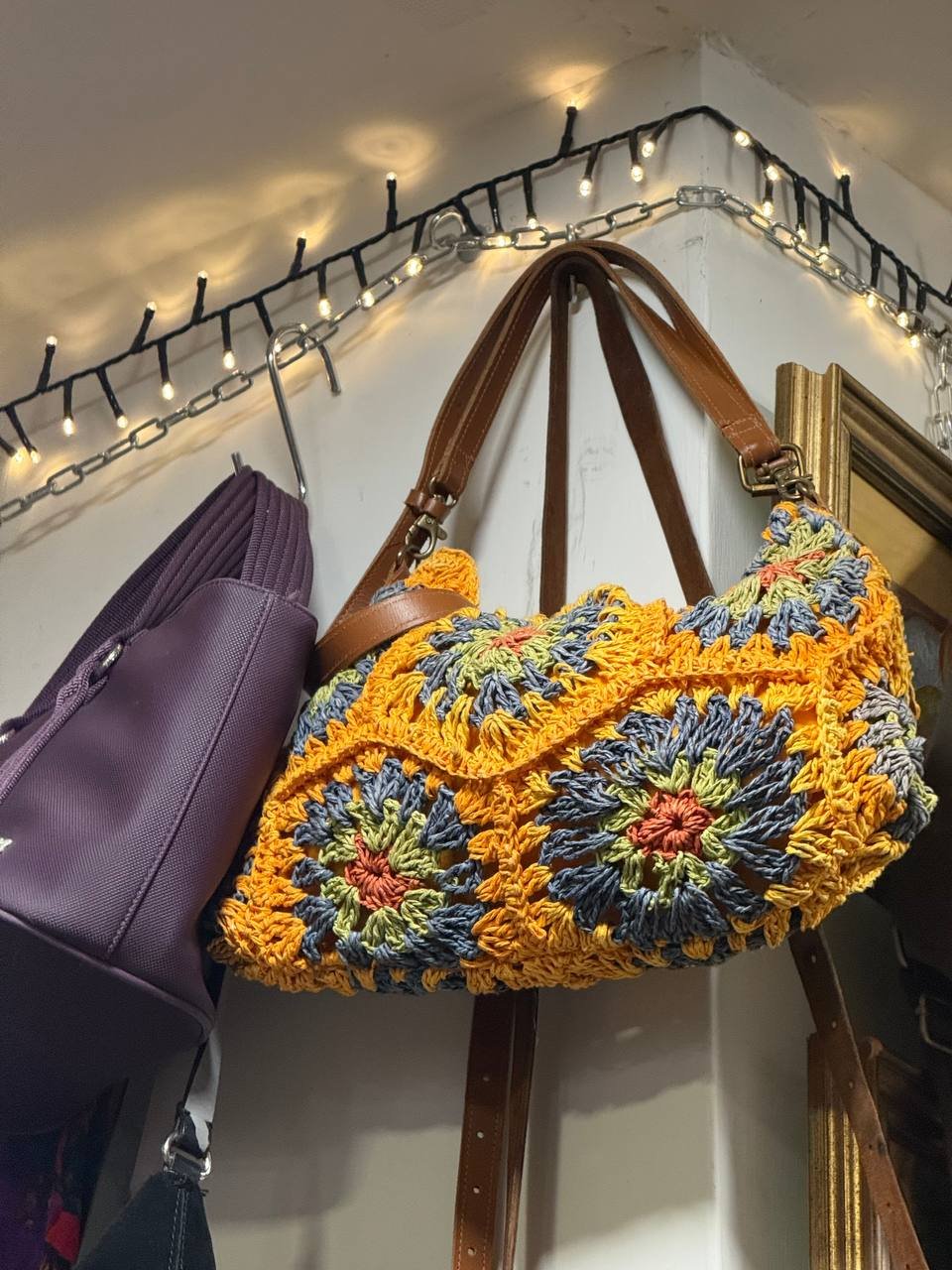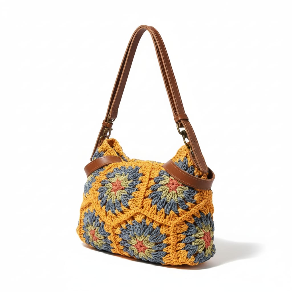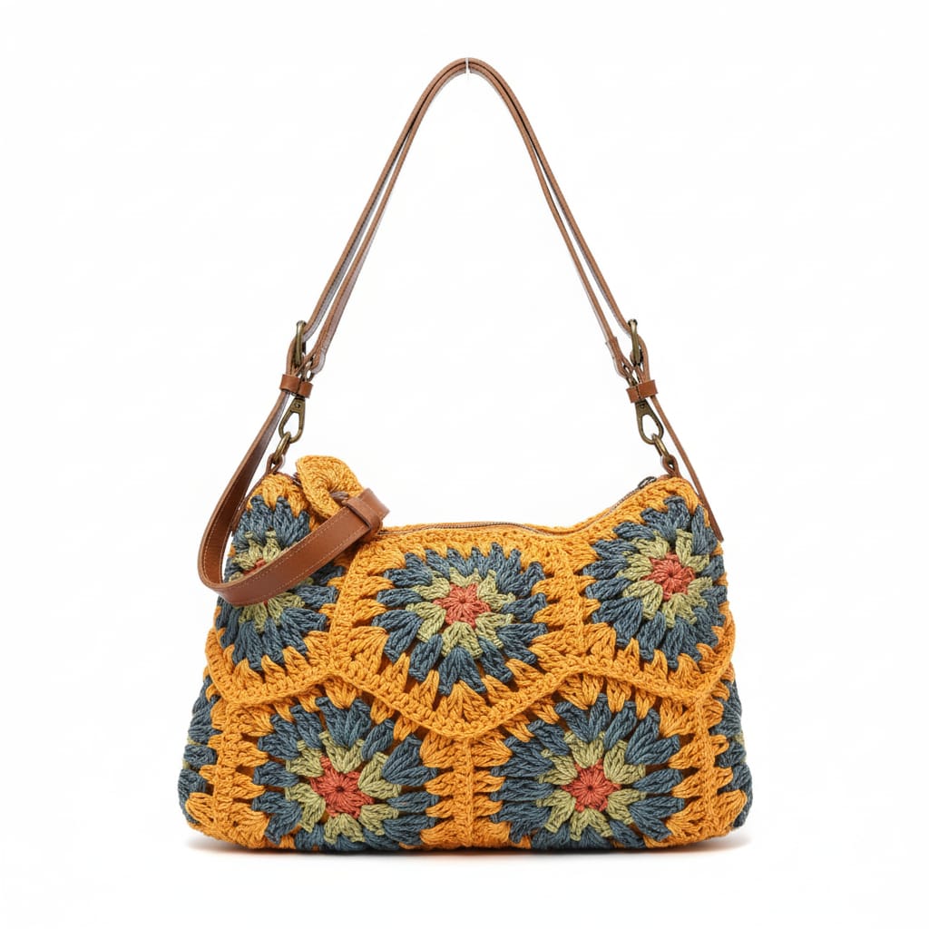 Borsa artigianale dalle tonalità vivaci e design unico, ideale per un look bohémien.