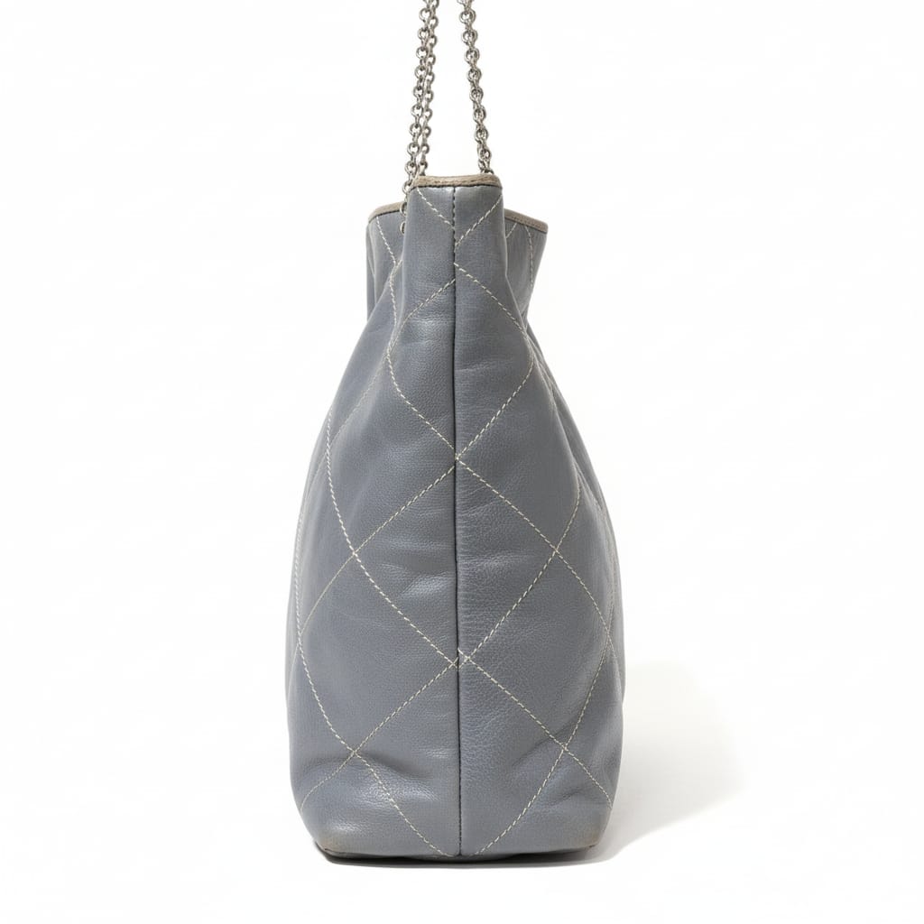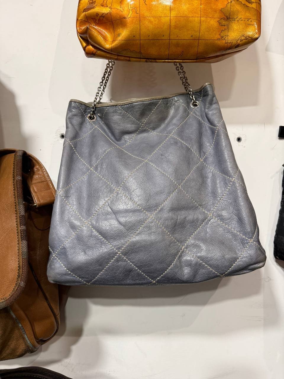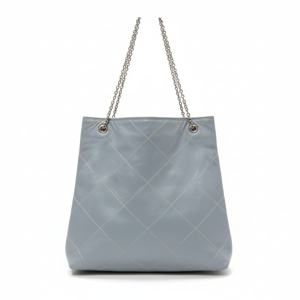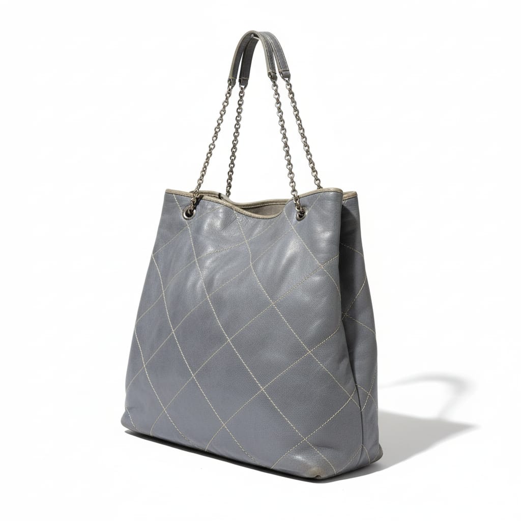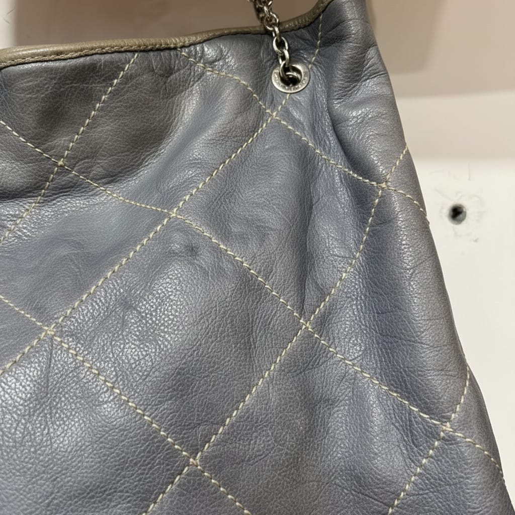 Borsa in pelle grigia di qualità con cuciture a rombi. Dotata di manici in catena per un look elegante e sofisticato. Adatta per uso quotidiano e occasioni speciali.