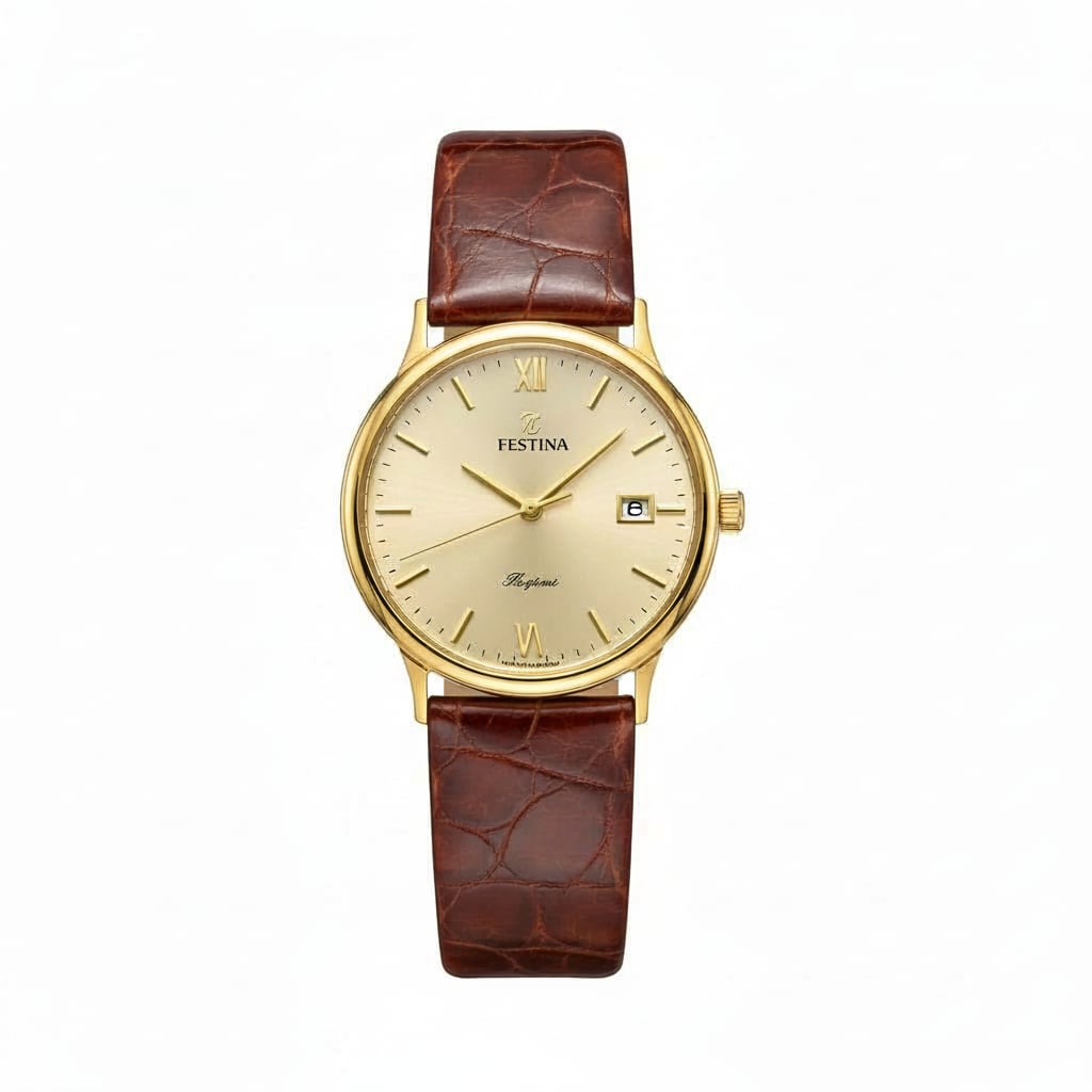 – Elegante orologio da polso Festina con cassa color oro e quadrante champagne.